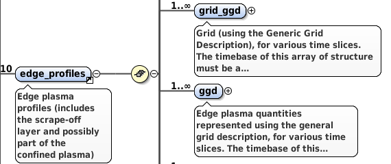 grid_ggd and ggd AOSs located within the edge_profiles IDS hierarchical tree structure (as seen in the Oxygen XML Editor).