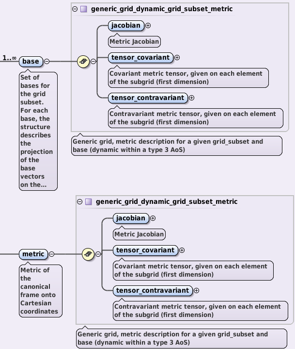 Overview of the grid subset base AOS and metric node (as seen in the Oxygen XML Editor).